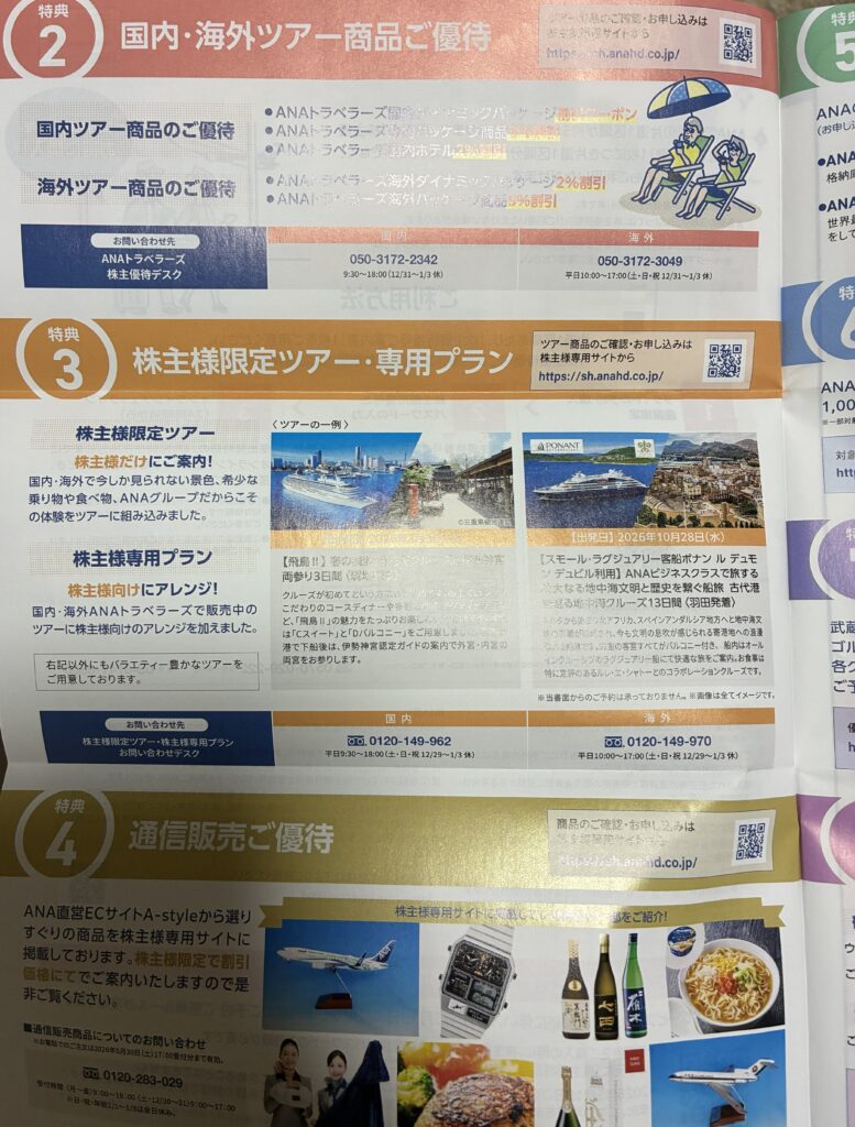 先日、ANAから株主優待が届きました。私は200株保有で、内容は以下の通りです。