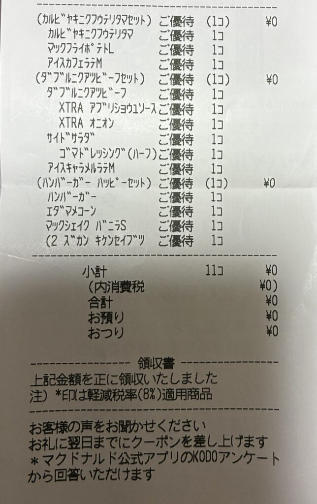 レシート上の表記は以下の通りです。