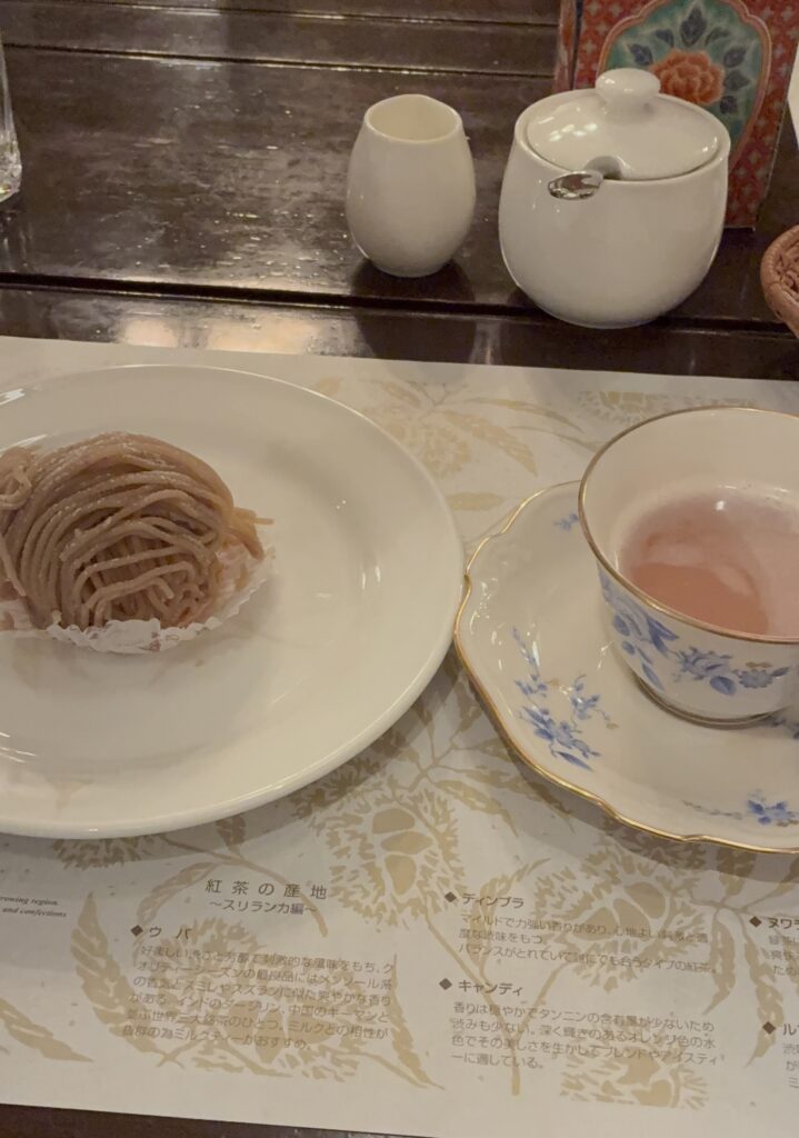 季節限定の 栗の紅茶 と モンブラン を注文すると、疲れが一気に溶けていきました。
