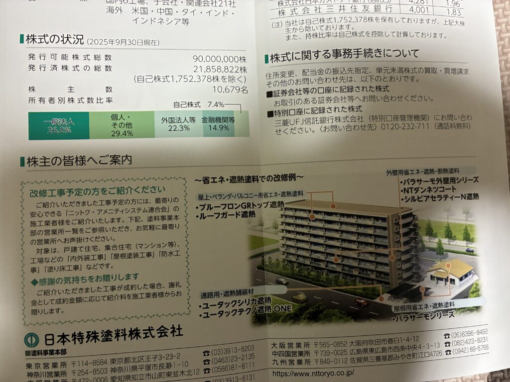日本特殊塗料株式会社の事業報告書を読んでいたところ、
