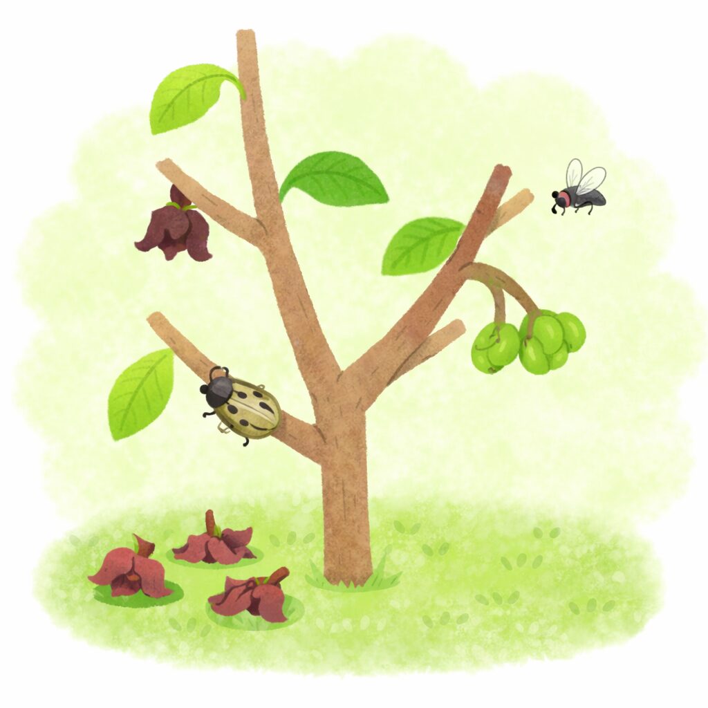 ポポーはミツバチではなく、こうした昆虫によって受粉される植物のようです。