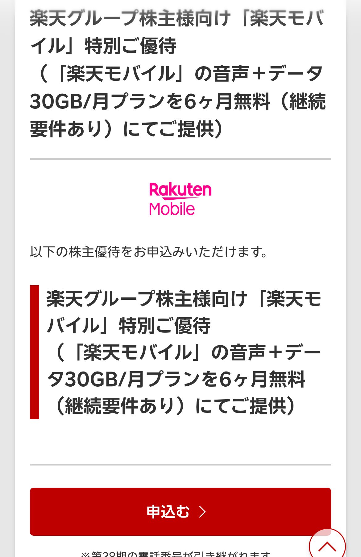 今回の優待は、楽天モバイルの
