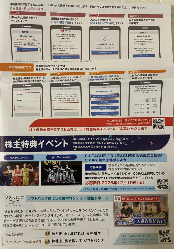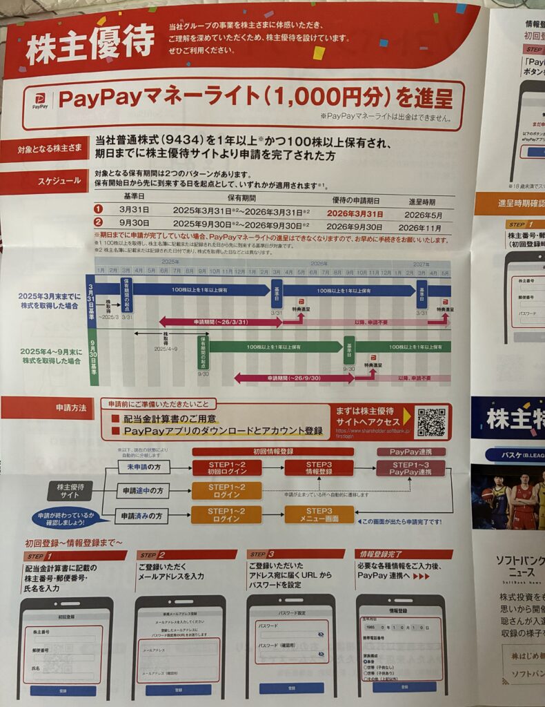 ソフトバンクの株主優待(PayPayマネーライト1,000円分)は、